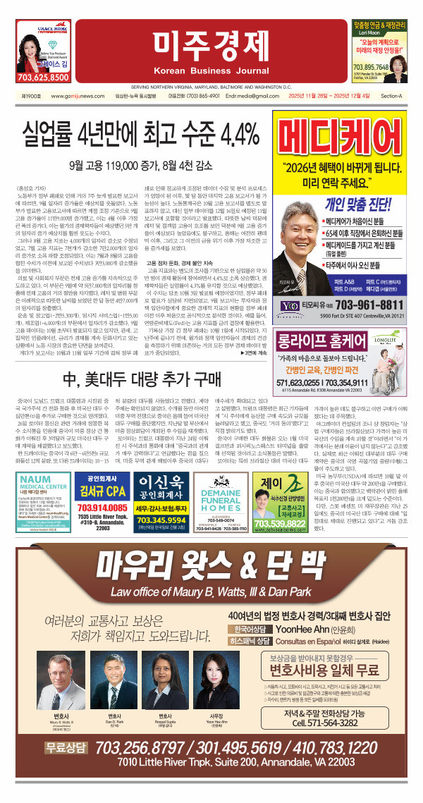워싱턴-뉴욕 동시발행 대표전화:( 703) 865-4901 Endr. media @ gmail. com 2025년 11월 28일- 2025년 12월 4일