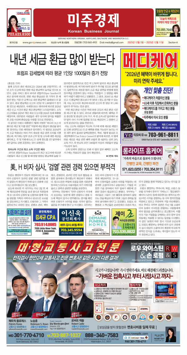 < 홍성호 기자 > 올해 소득의 내년 세금보고는 2026년 4월 15일까지다. 내 년 소득 신고에 따른 연방 세금 환급액이 늘어날 것으로 보 인다. 금융 서비스 회사 파이퍼 샌들러( Piper Sandler) 의 최근 분석에 따르면, 연방 세금 환급금은 한 가족이 한 해 동안 받는 가장 큰 금액으로 내년 환급액은 올해보다 더 클 수 있다. 평균 환급액은 신고자 1인당 약 1,000달러가 증가 할 것으로 예상된다. 국세청( IRS) 데이터에 따르면 2025년 세금 신고 기간의 평균 세금 환급액은 3,151달러였다. 소득 신고자들은 2025년 개인 세금 신고서를 2026년 초에 제출할 예정이며, 대부분의 사람들은 세무 당국에 양식을 제출한 후 21일 이내에 환급금을 수령할 것으로 전망된다. 이 분석은 트럼프 대통령이 7월에 서명한 " 하나의 크고 아 름다운 세금 및 지출 법안” 덕분에 세금 환급이 풍년을 맞이 할 것이라는 다른 예측들과 일치한다. 이 법안은 2025년까 지 소급 적용되는 여러 가지 새로운 세금 감면 조치를 시행 했는데, 여기에는 일부 초과 근무 및 팁 소득에 대한 세금을 폐지하고, 주 및 지방세( SALT) 공제 한도를 1만 달러에서 4만 달러로 상향 조정하는 것이 포함된다.