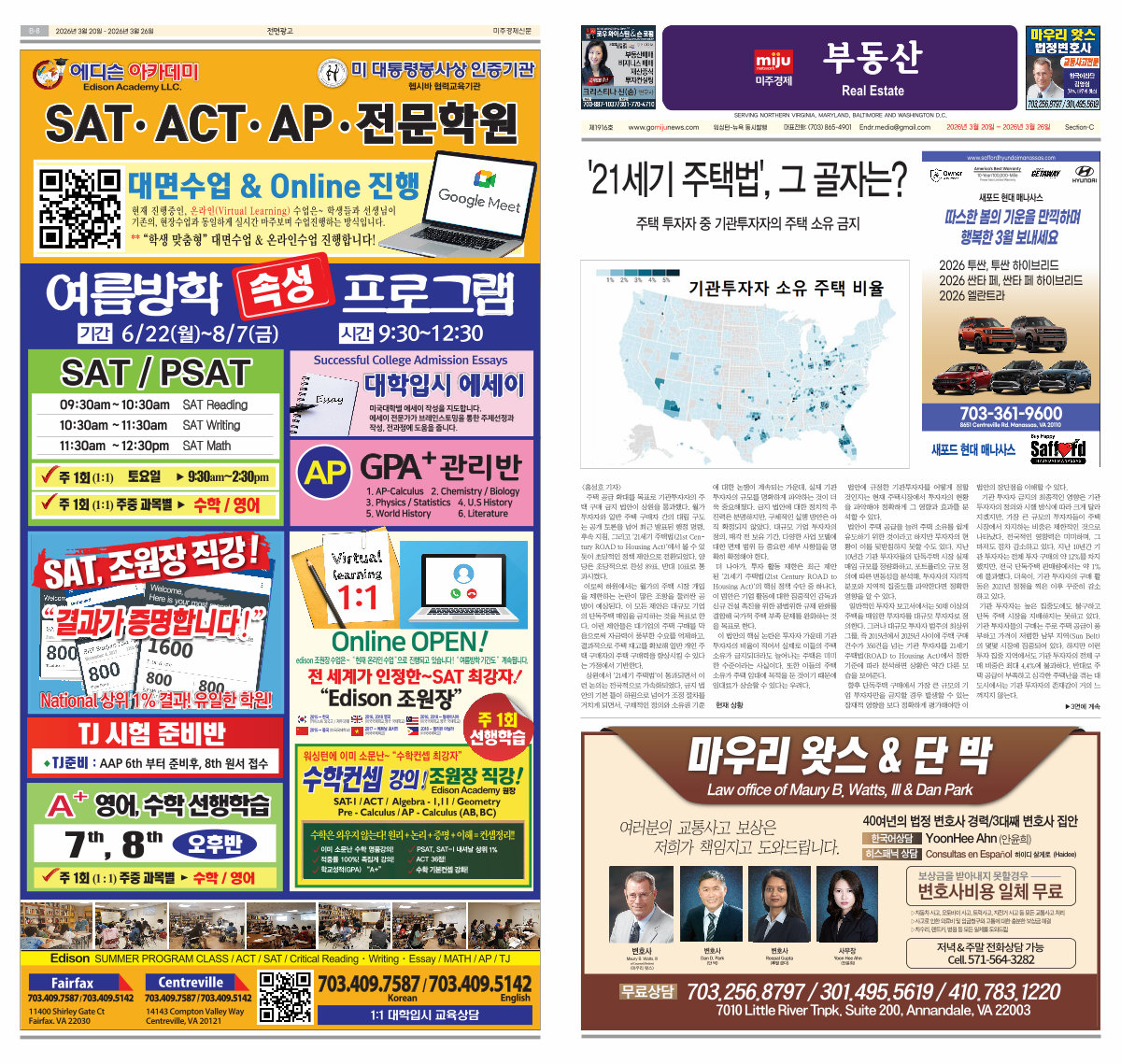 저녁 & 주말 � 전화상담 � 가능 Cell. 571-564-3282 |
