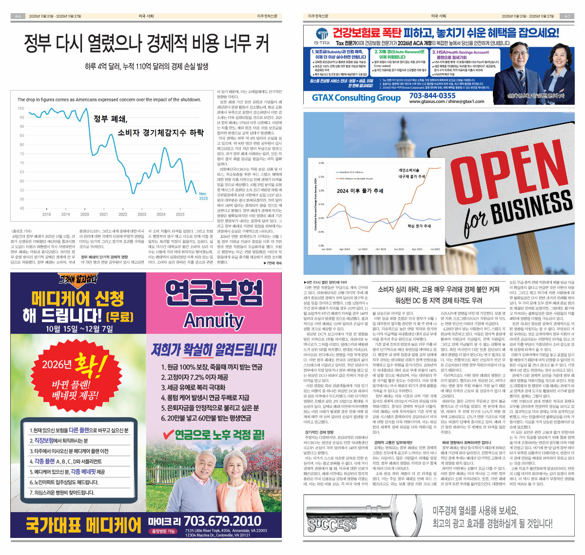 소비자 심리 하락, 고용 매우 우려돼 경제 불안 커져 워싱턴 DC 등 지역 경제 타격도 우려