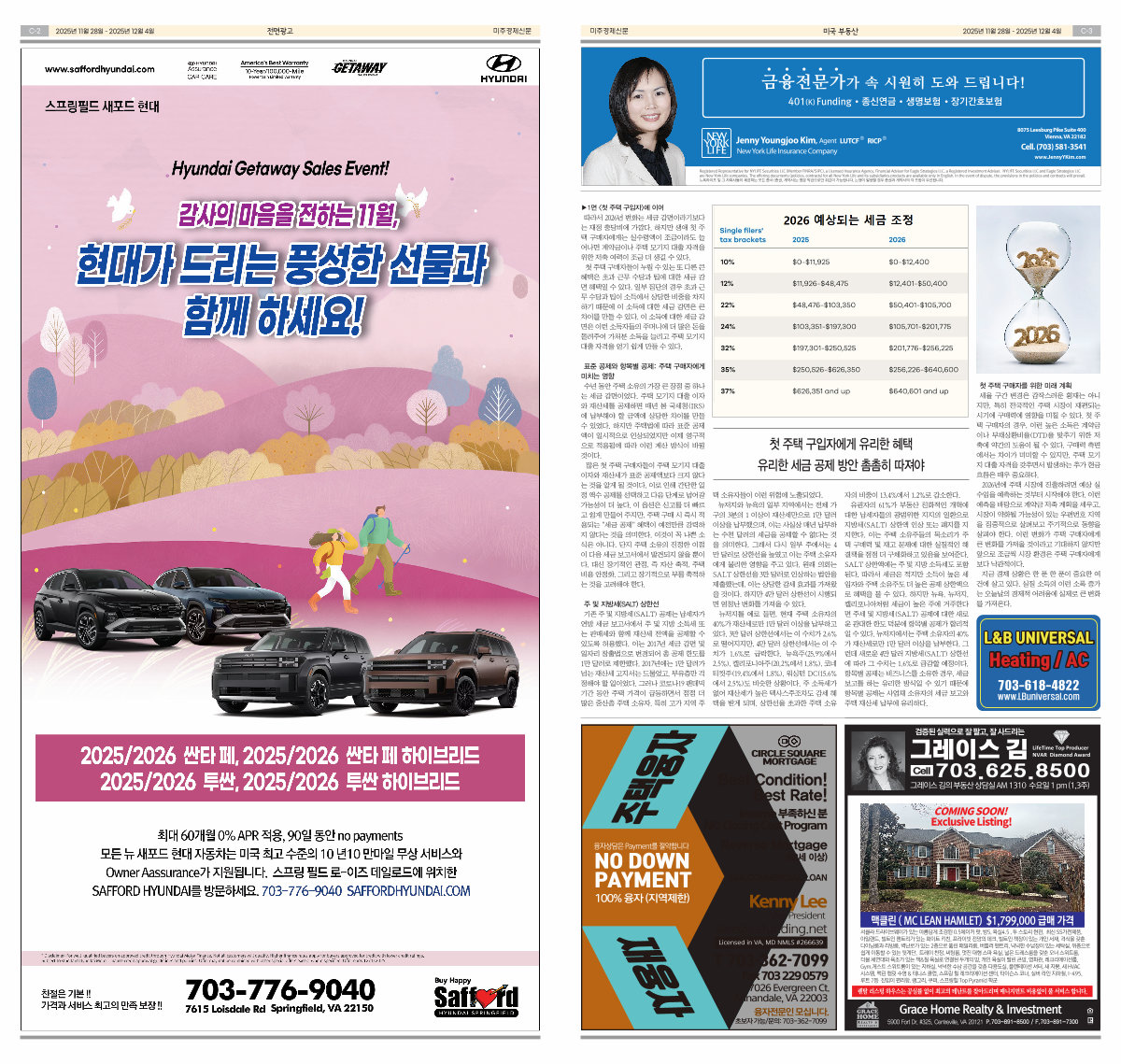 ▶1면 < 첫 주택 구입자 > 에 이어 따라서 2026년 변화는 세금 감면이라기보다 는 재정 충당비에 가깝다. 하지만 생애 첫 주 택 구매자에게는 실수령액이 조금이라도 늘 어나면 계약금이나 주택 모기지 대출 자격을 위한 저축 여력이 조금 더 생길 수 있다. 첫 주택 구매자들이 누릴 수 있는 또 다른 큰 혜택은 초과 근무 수당과 팁에 대한 세금 감 면 혜택일 수 있다. 일부 집단의 경우 초과 근 무 수당과 팁이 소득에서 상당한 비중을 차지 하기 때문에 이 소득에 대한 세금 감면은 큰 차이를 만들 수 있다. 이 소득에 대한 세금 감 면은 이런 소득자들의 주머니에 더 많은 돈을 돌려주어 가처분 소득을 늘리고 주택 모기지 대출 자격을 얻기 쉽게 만들 수 있다.